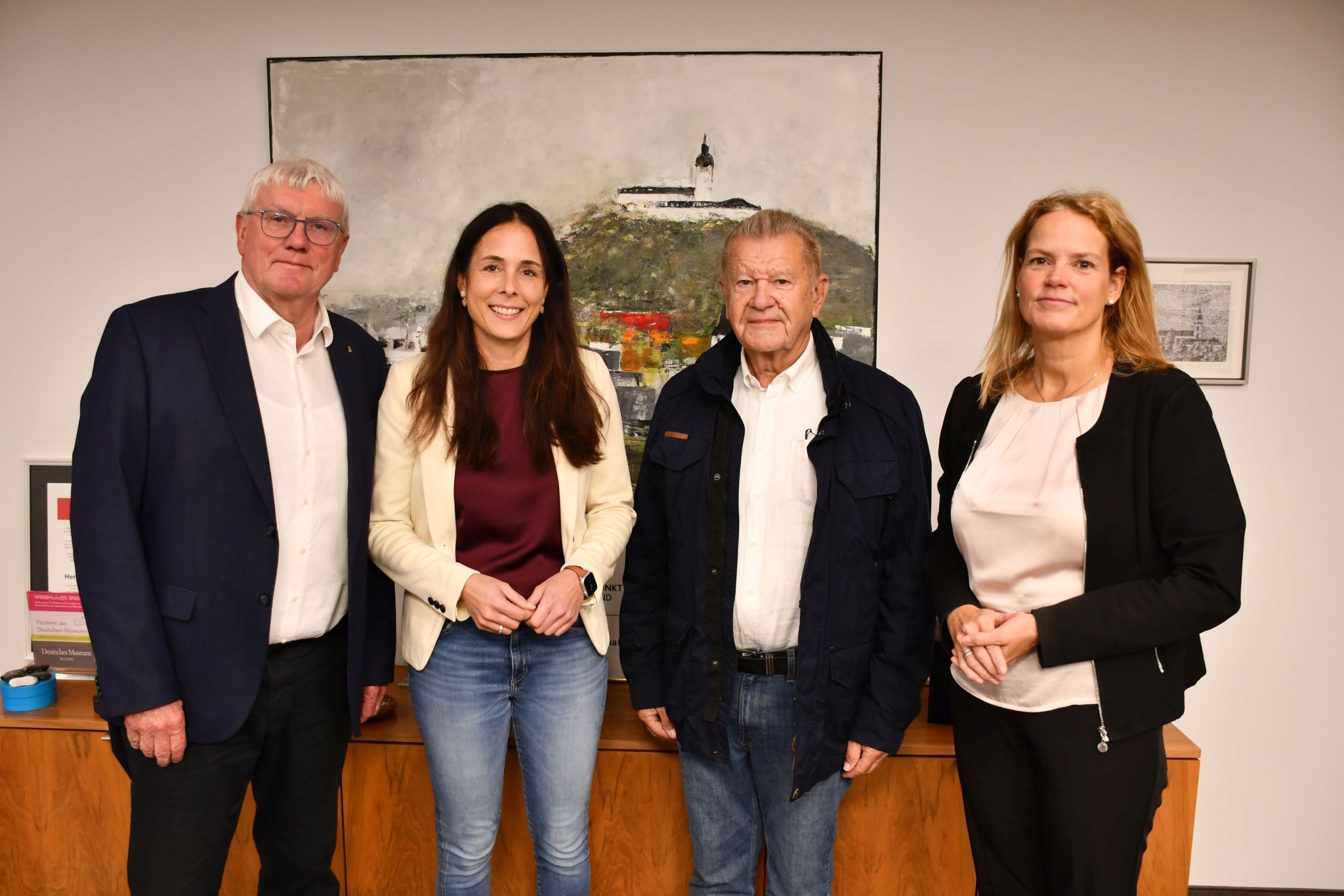 (v.l.n.r.) Landrat Sebastian Schuster, Anja Roth, Geschäftsführerin Jobcenter Rhein-Sieg, Michael Schleicher, stellvertretender Vorsitzender Mieterbund Bonn/Rhein-Sieg/Ahr e.V., Ulla Thiel, Sozialdezernentin des Rhein-Sieg-Kreises
